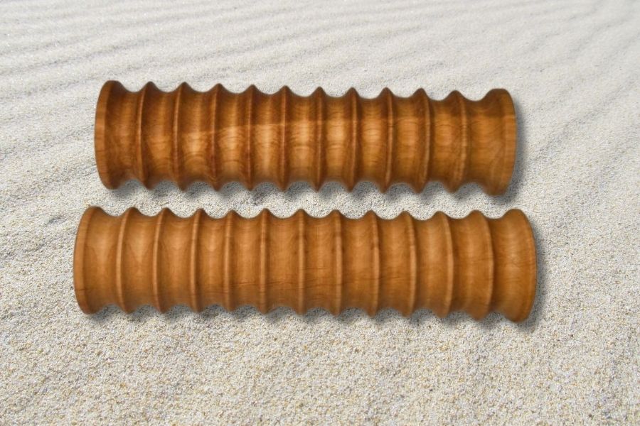 - Erlenholz ist relativ weich und elastisch, fühlt sich warm an, wodurch es in Form von Faszienrollen sanft, anschmiegsam und druckausgleichend empfunden wird.